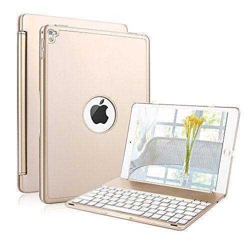 iPad Air 2 / iPad Pro 9.7 Keyboard Case, KVAGO Stylish Hard Shell Case with 7 Colors Back-lit Bluetooth Keyboard Case for Apple iPad Air 2 / iPad Pro 9.7 inch 2016 -Gold