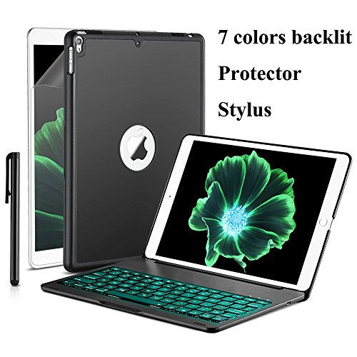 Daphnee ipad pro 10.5 keyboard case,new protective bluetooth keyboard case aluminum hard shell smart cover with 7 Colors backlit keyboard,auto sleep/wake for apple ipad pro 10.5 (A1701/A1709),black