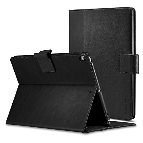 Spigen Stand Folio iPad Pro 10.5 Case Multi-Functional Premium Leather Stand with Pocket Hand strap Pencil Holder with Auto Sleep and Wake Function for Apple iPad Pro 10.5 Inch 2017 – Black