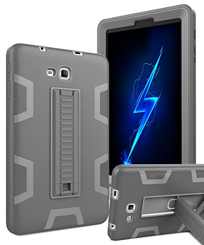 Galaxy Tab E Lite 7.0 Case,Galaxy Tab 3 Lite 7.0 Case,KAKA[Kickstand Feature]Three Layer Hybrid Heavy Duty Full-Body Shockproof Anti-Slip Protective Case for Tab E/3 Lite 7.0 inch,Grey