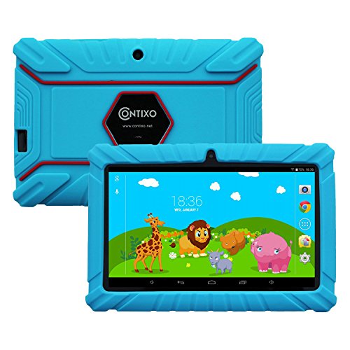 HOLIDAY SPECIAL! Contixo Kids Safe 7″ Quad-Core Tablet 8GB, Bluetooth, Wi-Fi, Cameras, Free Games, HD Edition w/ Kids-Place Parental Control, Kid-Proof Case (Blue) – Best Gift For Christmas