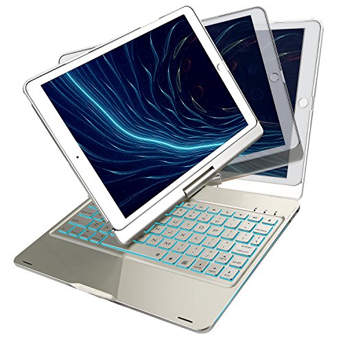 iPad Pro 10.5 Keyboard Case, iEGrow F360 7 Color Backlit and Dream Lighting Bluetooth Keyboard with 360 Degree Rotatable Case Cover for 2017 iPad Pro 10.5(Silver)