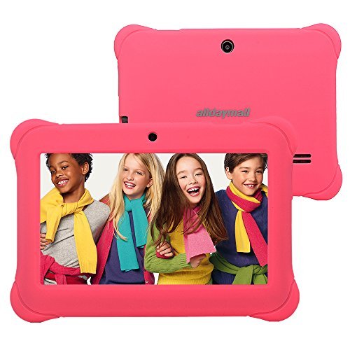 Alldaymall 7″ Android Tablets for Kids With Wi-Fi Quad Core and Dual Camera, 8GB, HD Kids Edition w/ iWawa Pre-Installed (Third generation A88S with Pink Kid-Proof Silicone Case)
