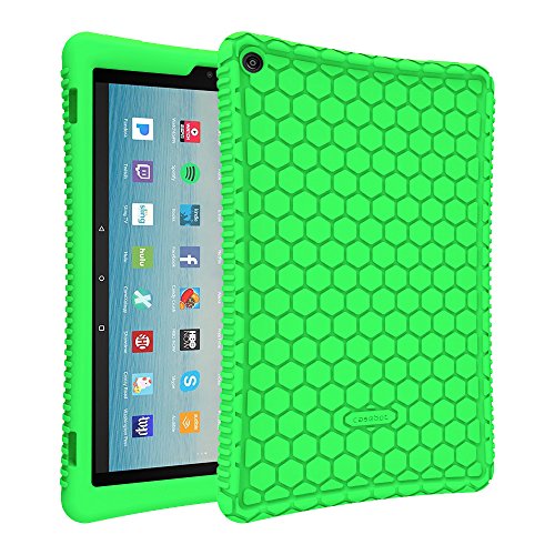 Fintie Silicone Case for All-New Amazon Fire HD 10 Tablet (7th Generation, 2017 Release) – [Honey Comb Series] [Kids Friendly] Light Weight Shock Proof Back Cover for Fire HD 10.1″ Tablet, Green