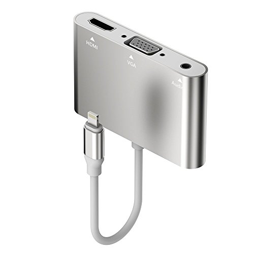 Lightning to HDMI VGA Audio Adapter Converter Cable, Plug & Play 3 in 1 for iPhone 7 / 7 Plus / 6 / 6 Plus / 6S / Apple iPad