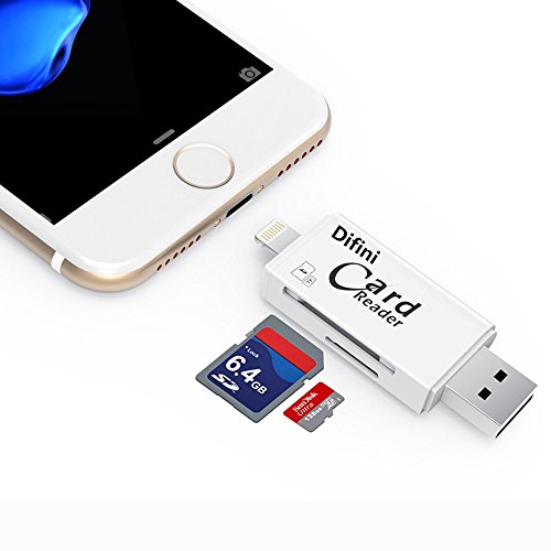 Difini SD/TF Micro Card Reader , USB Adapter With Lightning Connector , External Storage Memory Expansion for iPhone/iPad/Android phones/Mac/PC , 3 in 1