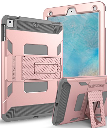 iPad Case,iPad Air Case-SKYLMW [Heavy Duty] Three Layer Hybrid Shockproof Full-Body Protective Case Cover With Kickstand for Apple iPad Air,iPad Air 2,iPad Pro 9.7,New iPad 9.7 2017 Release, Rose Gold