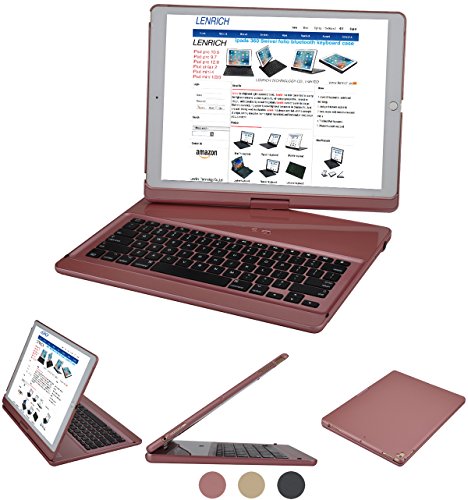 iPad pro 12.9 case Keyboard 2017 and 2015 version, Lenrich 360 Degree Rotatable ipad pro Wireless Bluetooth Keyboard stand for ipad pro 12.9 inch 2017 2nd Gen cover Auto Sleep/Wake up (Rose Gold)