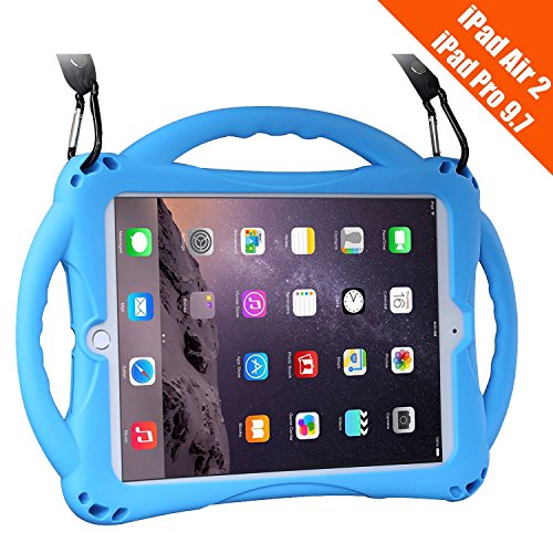 iPad Air 2 Case For Kids,TopEs Shockproof Silicone Handle Stand Case Cover&(Tempered Glass Screen Protector) For Both iPad Air 2 and iPad Pro 9.7 (Blue)